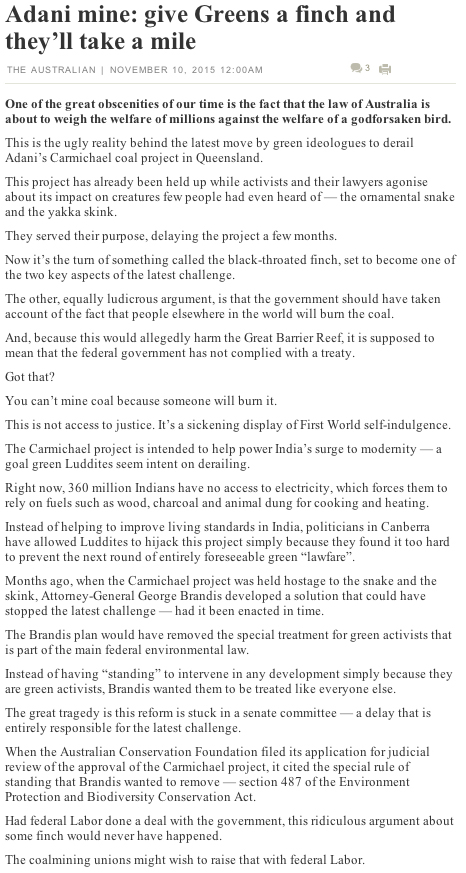 Naturally the reptiles are deeply concerned for Indian peasants, and certainly not filthy rich Indians nor the capacity of a select band of Australians to become even filthy richer by working with said Indians, nor is there any need to display any particular interest in the complexities of the issues or the way forward, as discussed in The Price of Light: India's Huge Need for Electricity is a Problem for the Planet.