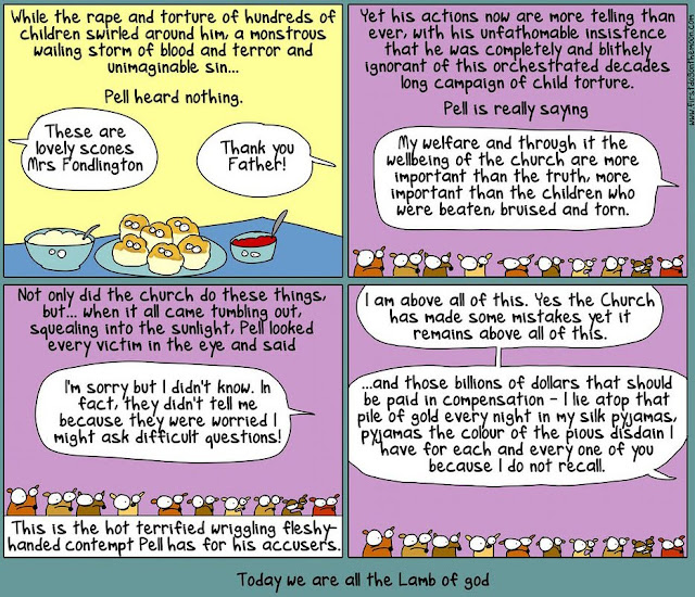 But of course it wasn't so much a backflip as attention seeking of the narcissist kind - remember the story's not about Pell or the victims, it's about the Bolter and so the backflip led to a retreat, and that too was duly noted, the runes cast, the entrails laid out, the chicken feet examined to see what the clucking of the chook might portend...