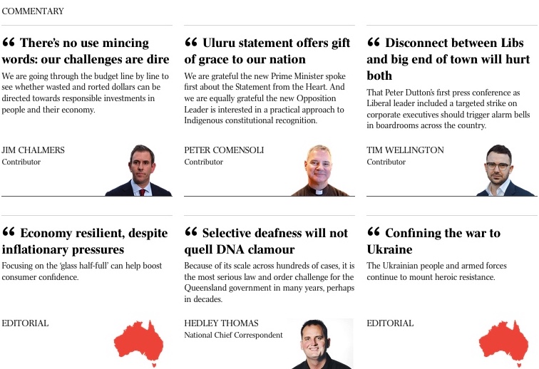 A couple of lizard Oz editorials, Jim himself talking of dire difficulties, a dog collar type trying to redeem the bromancer and Dame Slap, and Hedley getting hot under the DNA collar?