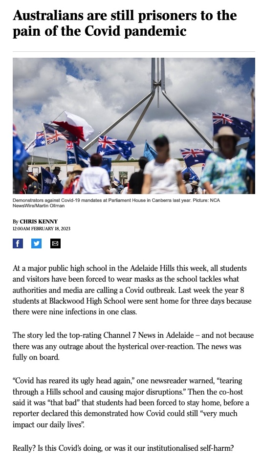 We suppose some credit should go to author of the puff piece, Jenna Clarke, for skirting around the fact that both the experience of the Chinese nation during its own current Covid pandemic, and the ever-mounting information on the lineage of the many strains of Covid that continue to appear, and their genealogy, leaves no real evidence for what Sharri actually said in her book - which was about a lot more than the ‘prospect’ of a ‘leak’ from the Wuhan laboratory.