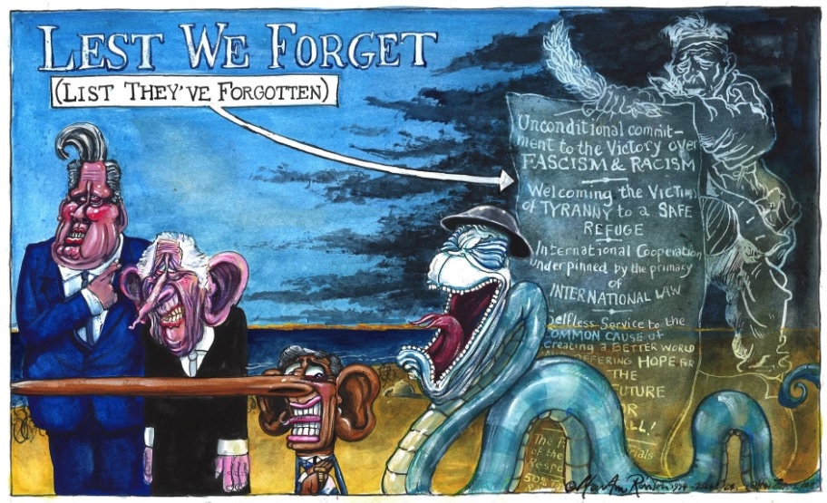 Yep, no mention of D-day, and Dame Slap, in the far right position, rabbiting on about the ACT for the umpteenth time, and Petey boy mentioned in despatches, and sharks, and the rag really looked tired, or perhaps that's just projection and the pond is tired and in need of a break and the grand city of the south beckons.