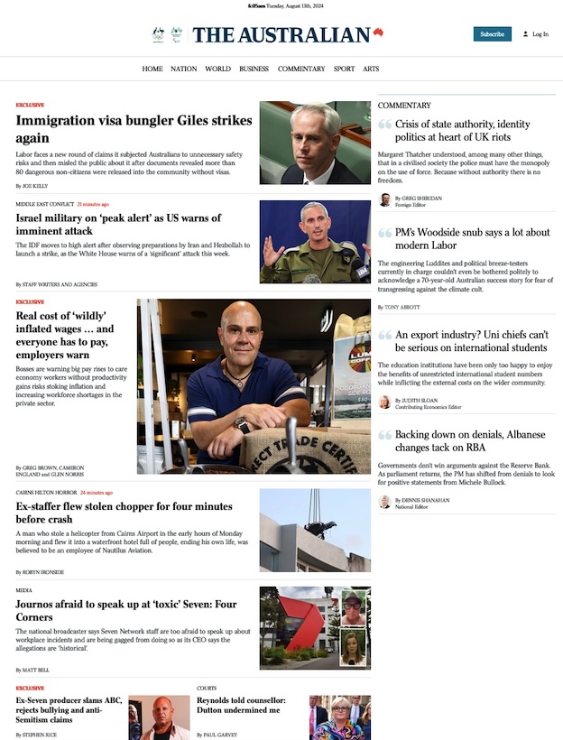 Speaking of failed dreams and failed dreamers, there was plenty of that this day on the front page of the lizard Oz ...