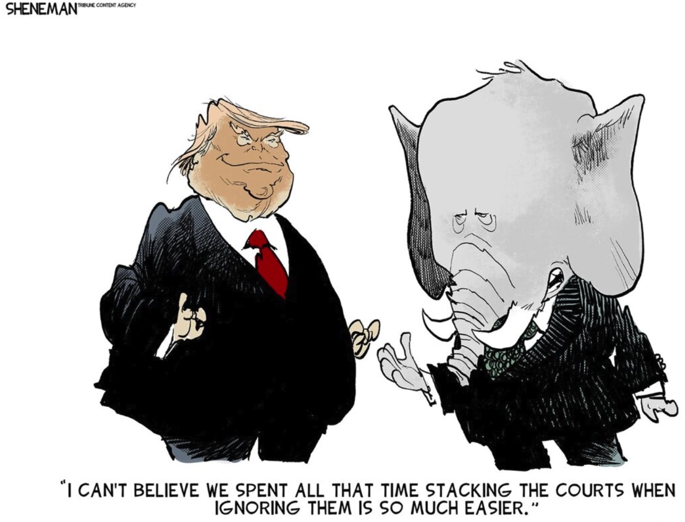 So far these latter decisions have constrained only Democratic presidents. Soon we will see not only whether the Court is willing to apply them to Trump but also whether Trump’s current abuses will shake its confidence in largely unchecked presidential authority. In his first term Trump had the worst won-lost ratio in the Supreme Court since FDR. His even more blatantly lawless conduct this time around should be grounds for him to eclipse that record. No one in this nation’s history since George III has provided a better object lesson in the risks of unlimited executive power. We can both demand and hope that the Court agrees.